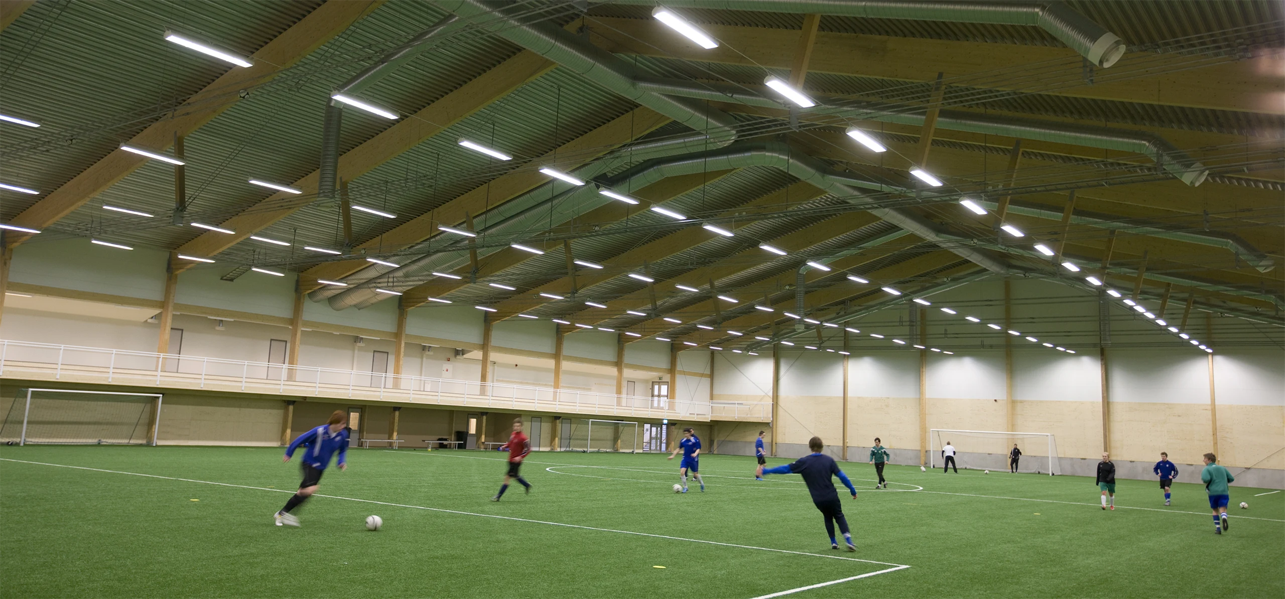 Martinsons fotballhaller med bærekonstruksjon i limtre gir både barn, ungdom og seniorspillere tilgang til et behagelig og hjemmekoselig treningsmiljø året rundt. Bærekonstruksjonene i limtre skaper perfekte muligheter for bygninger med store, frie spennvidder uten mellomstøtte. En konkurransedyktig totaløkonomi gjør det til et godt valg både på kort og lang sikt. Martinsons tilbyr kostnadseffektive og lettprosjekterte ferdige løsninger for fotballhaller, spesielt tilpasset kundens virksomhet.
