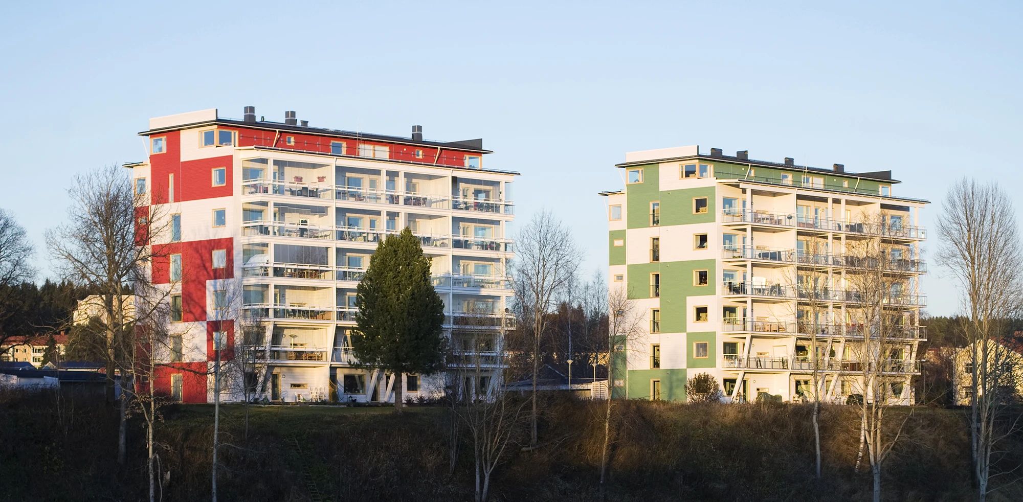 Älvsbacka Strand – ett populärt bostadskvarter med sexvånings bostadshus i trä. Bostadskvarteret står i mycket attraktivt läge, alldeles vid älvskanten i centrala Skellefteå. Flerbostadshuset är byggt av element i KL-trä med hög prefabgrad, vilket utgör grunden i Martinsons byggsystem för höga flerbostadshus. Kvarteret är ritat av White Arkitekter och entreprenör för projektet var Lindbäcks Bygg.