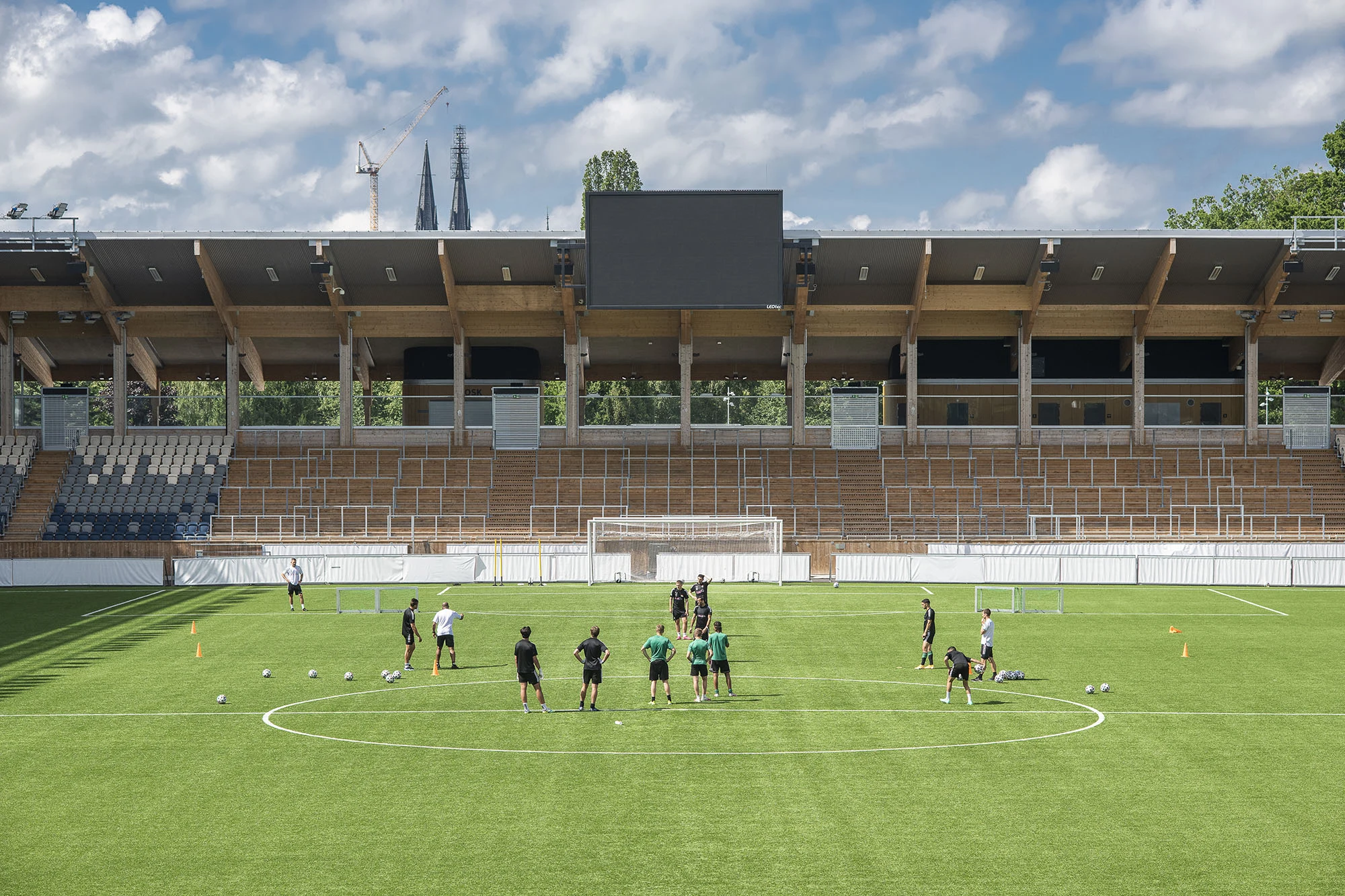 I efterhand kunde valet av utomhusläktare i limträ tyckas självklart: det var mer kostnadseffektivt och hade dessutom både praktiska och estetiska fördelar.